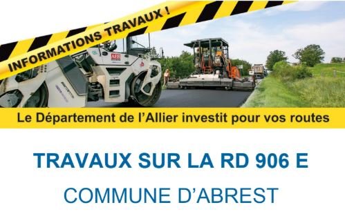 Le Département de l'Allier vous informe que des travaux de stabilisation du talus routier de la RD 906 avenue de Thiers à Abrest, depuis la Colombière jusqu'à la rue des Vignes, auront lieu du 09 février au 28 mars 2026.