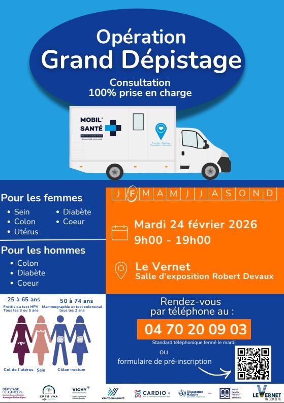 OPÉRATION GRAND DÉPISTAGE - LE VERNET - LE MARDI 24 FÉVRIER
