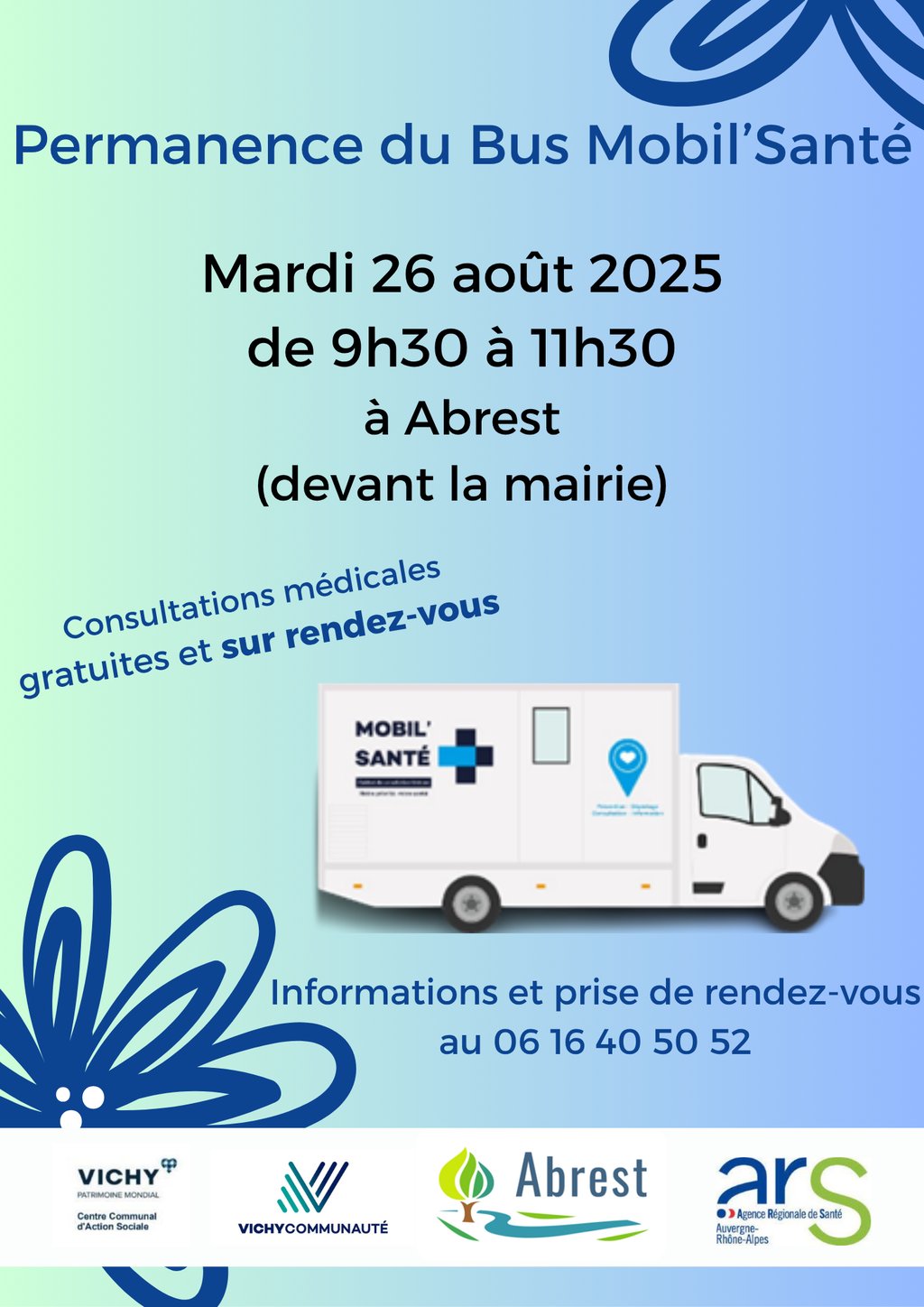 Le mardi 26 août, de 9h30 à 11h30, le bus Mobil'Santé sera présent devant l'ancienne mairie.