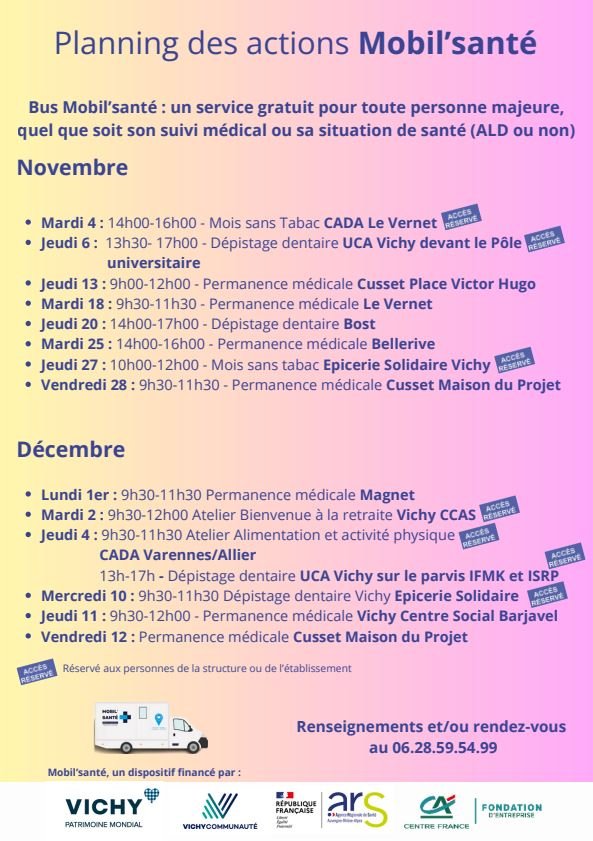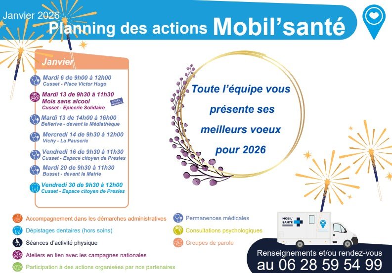Le bus Mobil'Santé continue ses permanences médicales et ses diverses actions de dépistage, tests et informations.