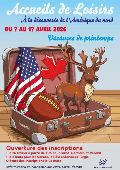 Vichy Communauté vous informe des dates d'ouverture des inscriptions des accueils de loisirs pour les vacances de printemps 2026 :